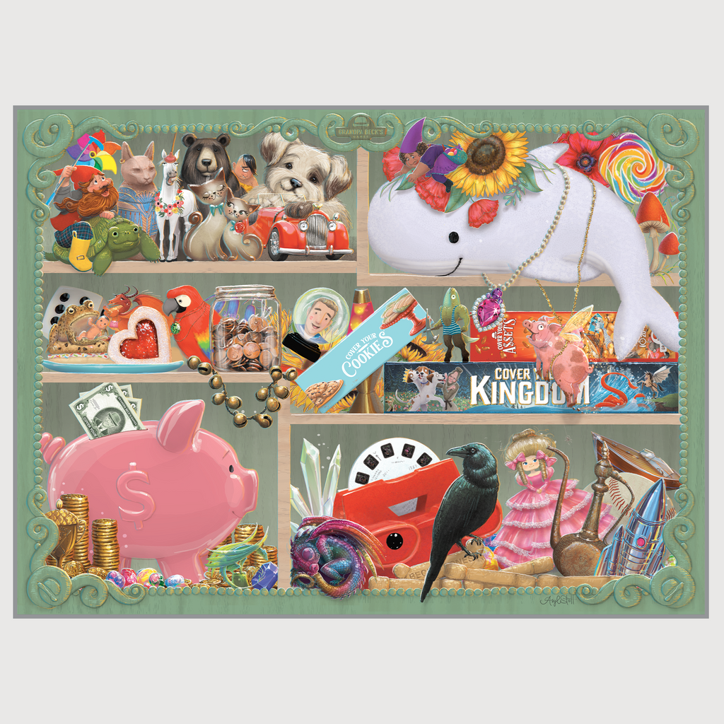 Enjoy a beautifully illustrated 100-piece jigsaw puzzle featuring artwork from Grandpa Beck's Games.